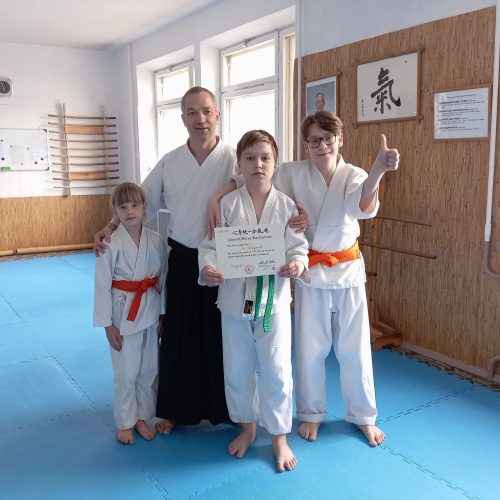 дети 7-12 лет полноценно занимаются физподготовкой своего тела: выносливость, гибкость, ловкость и сила. Одновременно проходят специальный курс упражнений для ментального спокойствия, сосредоточенности и баланса. Изучают базовую технику Ки-Айкидо и сдают на младшие ученические пояса. В тренировках присутствуют игровые элементы.